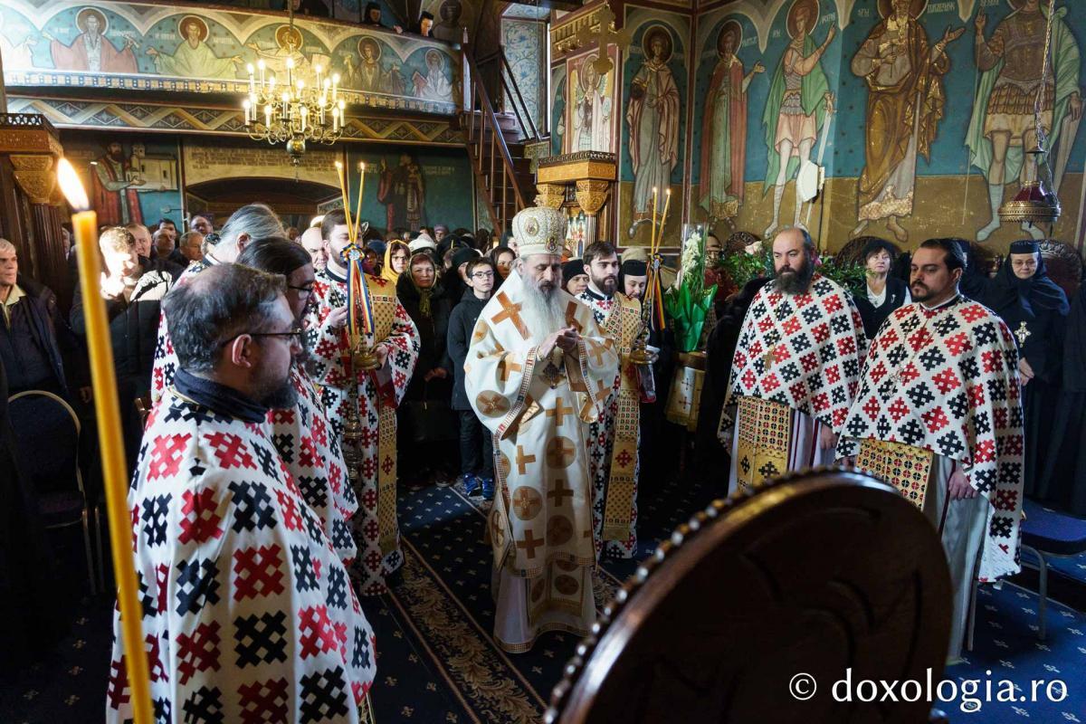 Sfânta Liturghie a fost săvârșită de Înaltpreasfinţitul Părinte Teofan, Mitropolitul Moldovei și Bucovinei, înconjurat de un sobor de preoți și diaconi.